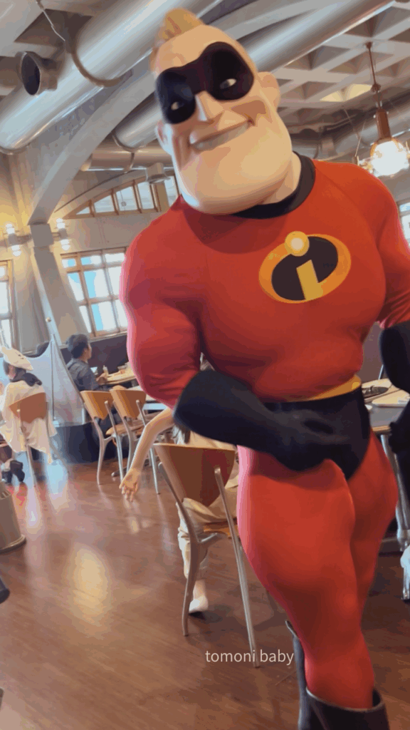 ここでサプライズ!キャラクターグリーティングに遭遇し、ミスターインクレディブルに会うことができました!