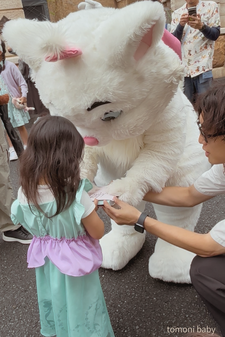 - マリーちゃんのフリーグリーティングでサインをもらう