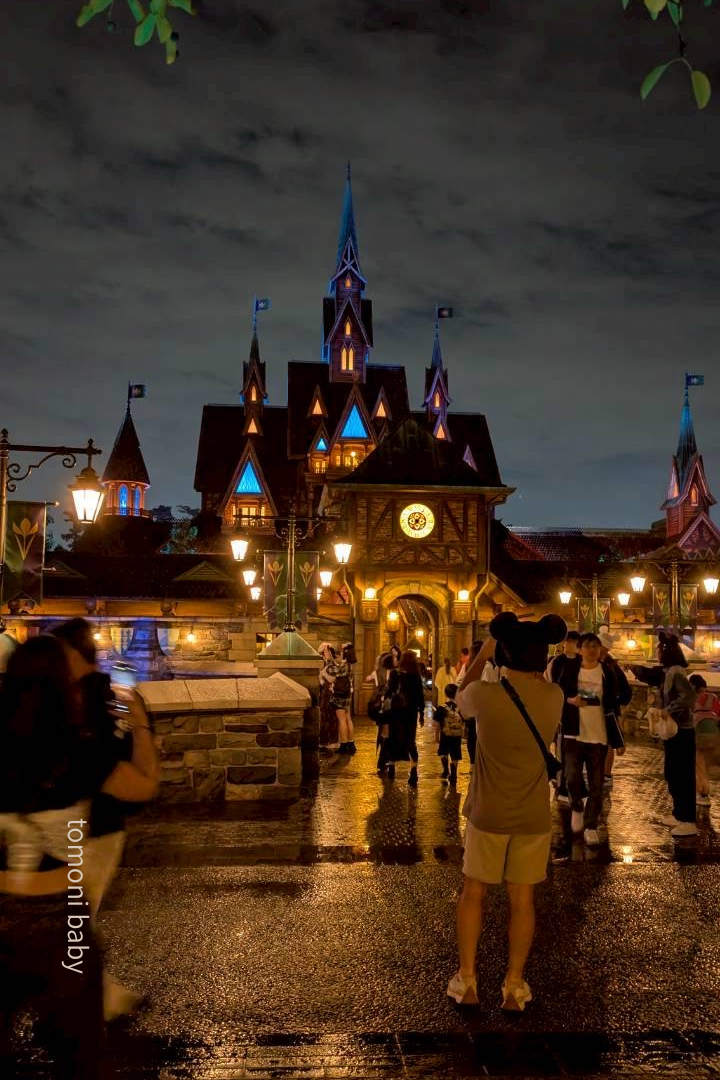 夜はついに新エリア ファンタジースプリングス へ。雨の日のおかげか、夜は全体的に待ち時間も短めでした。