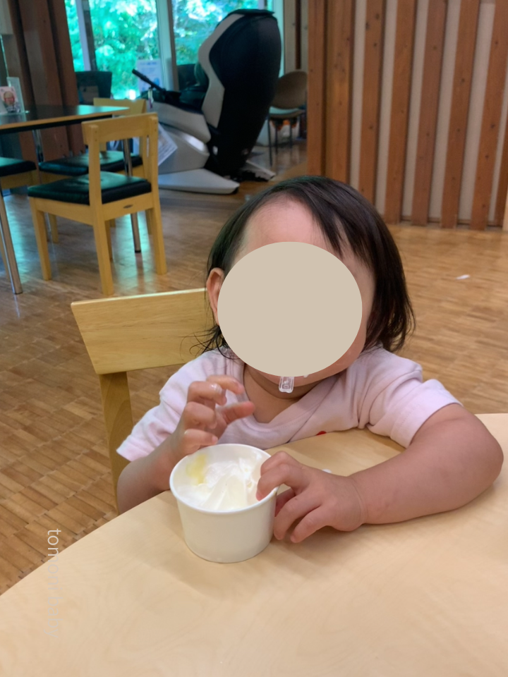 お散歩のあとはカフェでアイスも食べられて、大満足な娘