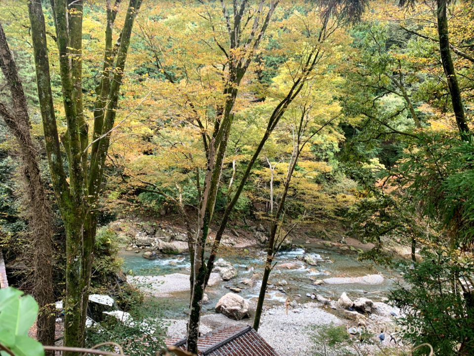 川沿いの席からは美しい渓谷が眺められ、都会では味わえない雰囲気を楽しめます。